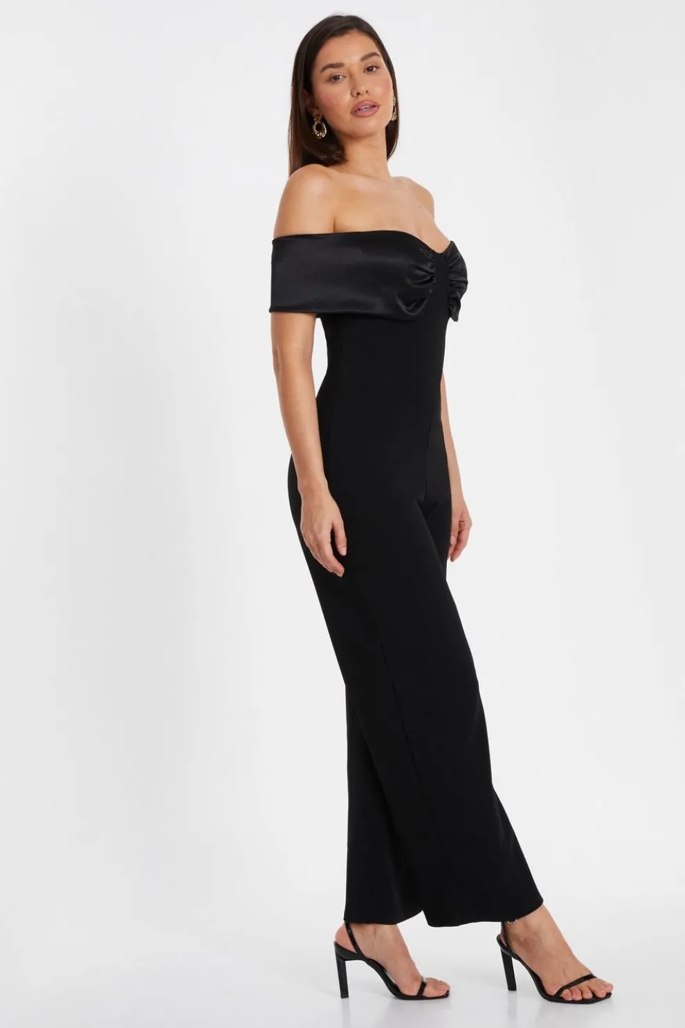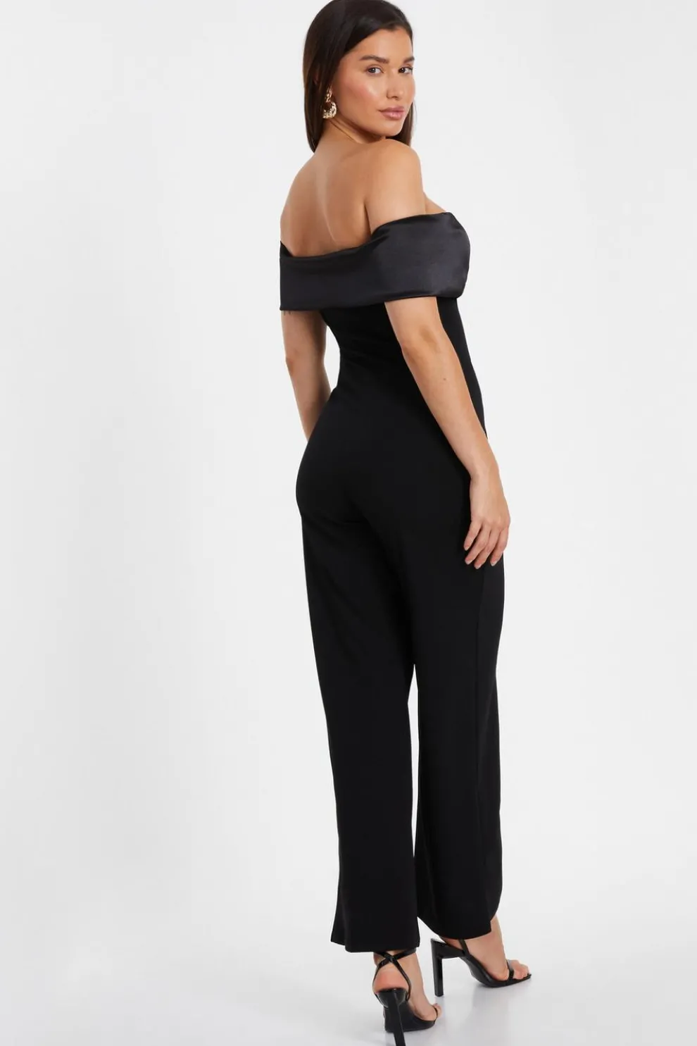 - Satin detail Bardot neckline