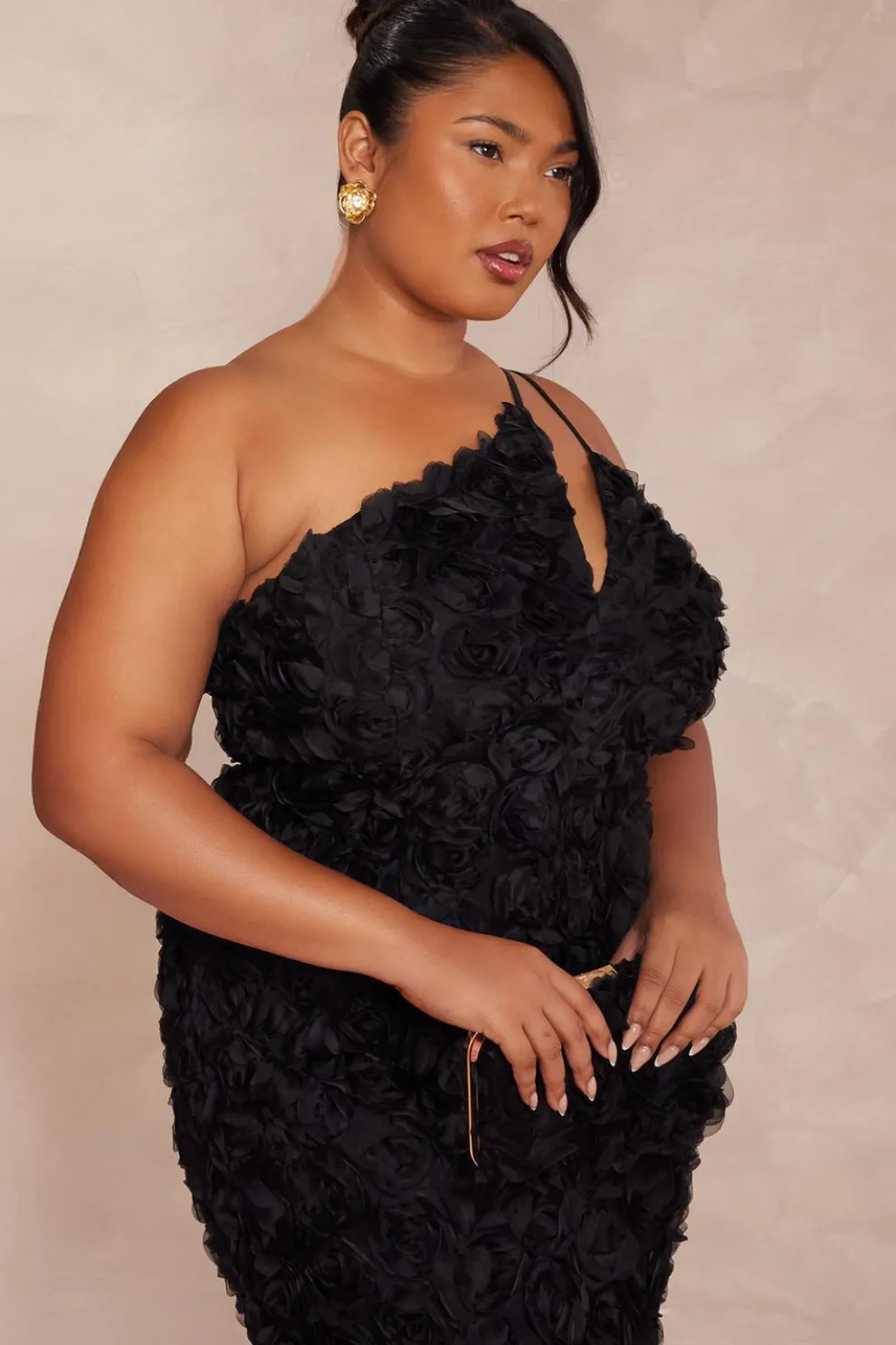 - Asymmetric neckline