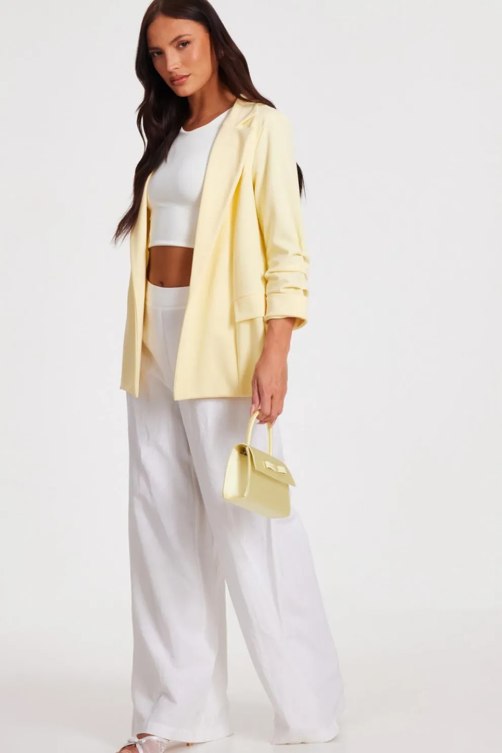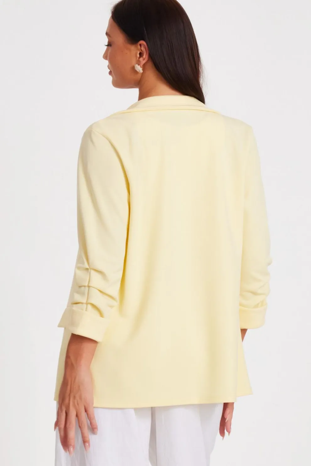 - Ruched sleeves