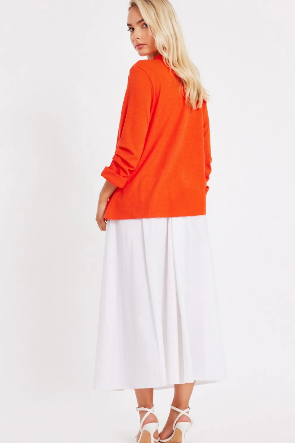- Ruched sleeves