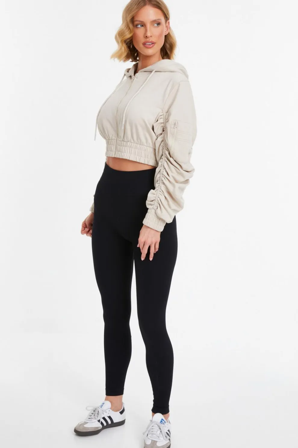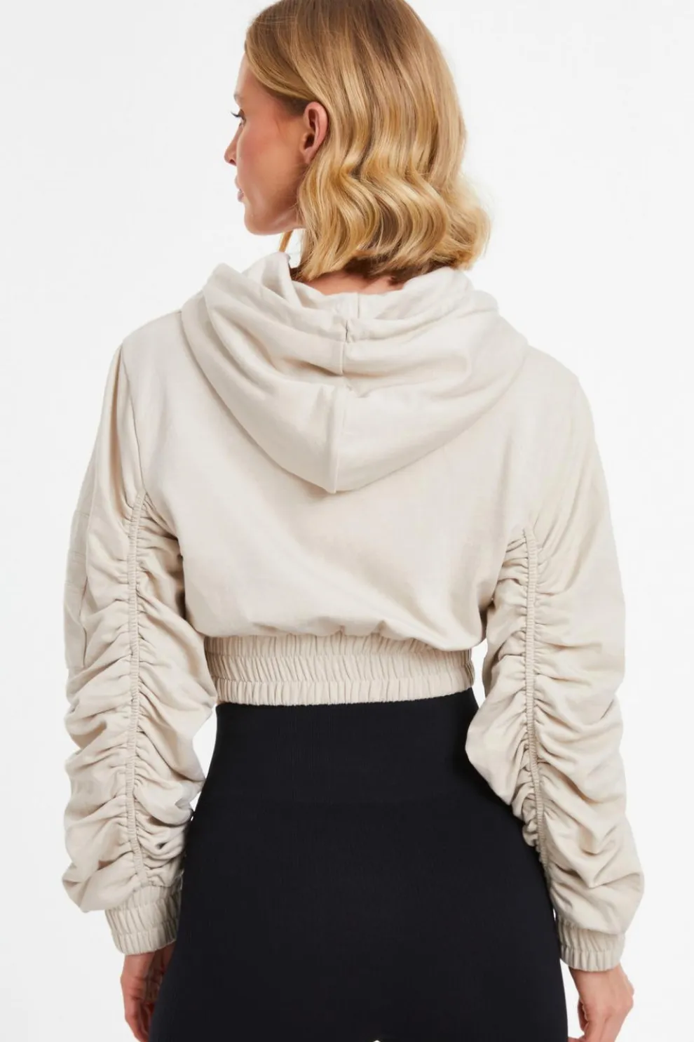 - Ruched sleeve